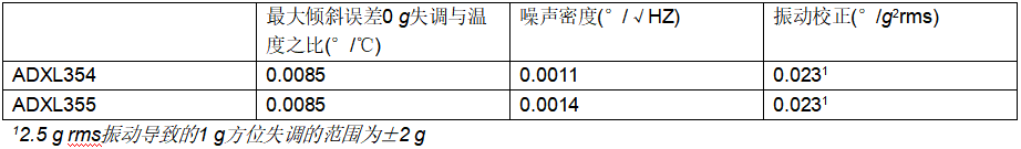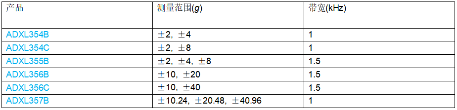 范围的加速度计才能最大限度减少削波导致的失调。表4列出了ADXL35x系列加速度计及其相应的