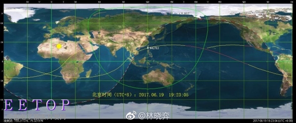中星9A截至6月19日19点23分的位置信息(来源:航天爱好者网-林晓弈)
