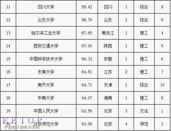 2016年中国一流大学排行榜(前20强)