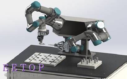 工作流程描述: UR双臂,其中一个手臂安装服务器CPU,同时另外一个手臂安装风扇。完成后,双臂协同装配内存条。UR双臂机器人的两个手臂,既可以单独运行,也可以协同工作。