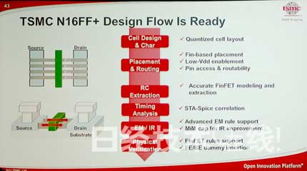 Chen表示,面向16nm FinFET+工艺的设计流程早已准备就绪(已进入可实际设计芯片的状态)(图2)。现在,16个开发项目正在推进,到2016年底,将有50个设计送厂生产。
