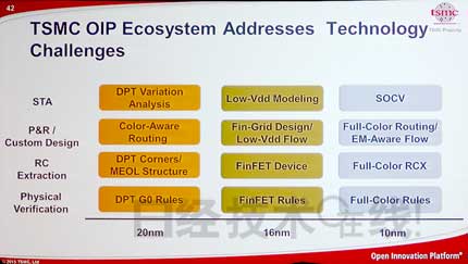| 图5:10nm工艺的规则检查和寄生成分提取的课题。 台积电的幻灯片。 (点击放大) |