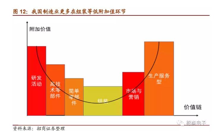 投资建议:在过去多年间,中国从微笑曲线中附加值最低的代工开始,逐渐切入下游,树立了以华为,ZTE,小米,格力等全球知名品牌。但位于整个产业链微笑曲线上游的半导体、软件系统乃至于基础材料都有显著不足。产业缺乏自上而下自主化体系。