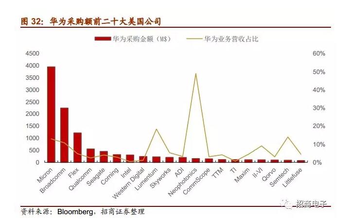 3、华为供应链分析:短板依旧明显,但不必过于悲观。手机终端和基站设备为华为公司最重要的产品。通过拆机分析华为手机供应链可知,海思在手机处理器,电源芯片方面已基本实现自给。而汇顶科技,豪威科技等国产厂商的突破亦有力支撑了进口替代。存储器芯片方面虽依赖进口,但日韩厂商可满足需求。唯有射频领域对美系供应商高度依赖。射频作为模拟芯片皇冠上的明珠,门槛最高。虽然近两年国产射频芯片厂商逐步起量,但距离进口替代仍有较大缺口。目前国产射频PA厂商主要有唯捷创芯(2018年打入华为供应链),慧智微(正在OPPO等厂商处验证),中科汉天下等。而射频开关及LNA厂商主要有卓胜微。