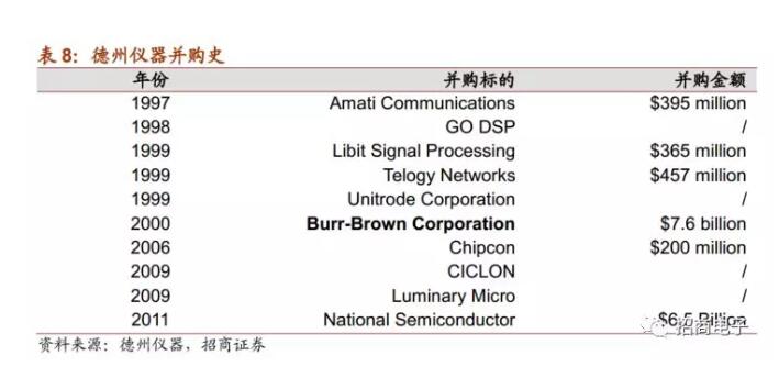 (1)并购整合:以德州仪器为例,公司是全球第一大的模拟芯片设计公司,但2000年之前,TI仅是一家专注DSP,基带处理器的芯片设计公司,尚未在模拟芯片领域大展拳脚。公司全面切入模拟芯片契机来自2000年的并购,公司以76亿美元的对价并购了名噪一时的模拟大厂Burr-Brown,随后公司又陆续完成了多起并购,完善了公司在模拟芯片领域的布局。