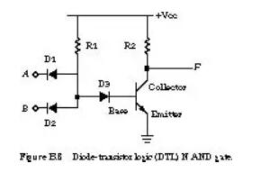 L。-二极管晶体管逻辑( Diode-Transistor Logic)。-(输入通过二极管输入,输出通过晶体管输出。)。DTL是早期由其他人发明的。IBM在他们的360系列大型计算机中使用了它的不同版本。这是一个比RTL更好的设计。它解决了除速度之外的所有RTL问题。仙童于1964年引入了他们的DTL家族。