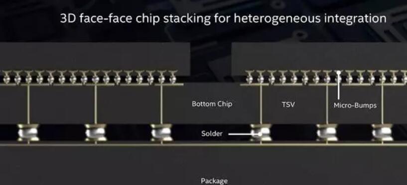 而从英特尔所揭露的技术资料可看出,Foveros本身就是一种3D IC技术,透过硅穿孔(Through-Silicon Via, TSV)技术与微凸块(micro-bumps)搭配,把不同的逻辑芯片堆叠起来。