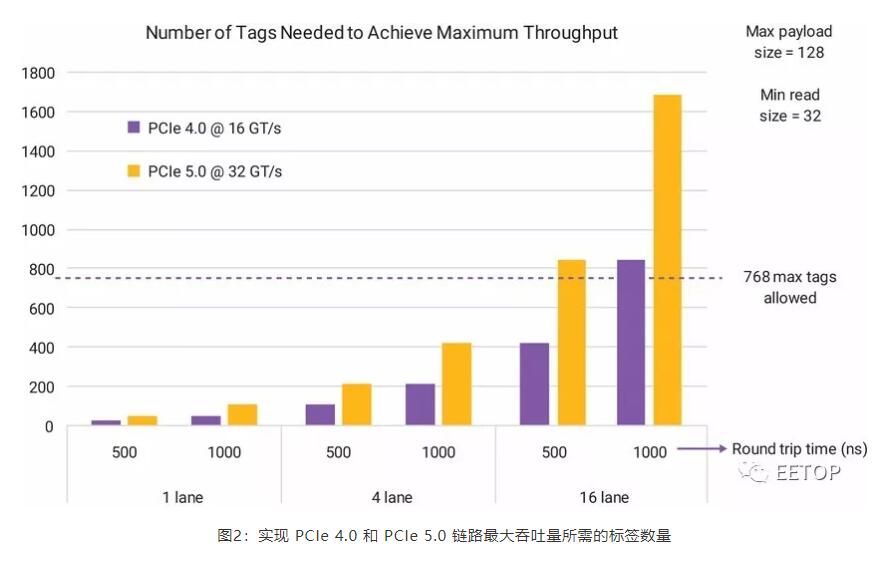 图2:实现 PCIe 4.0 和 PCIe 5.0 链路最大吞吐量所需的标签数量