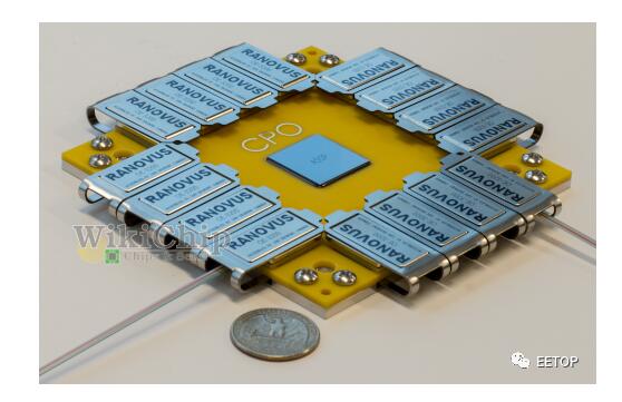 由于Odin 8使用了与技术无关的接口,因此该封装中间的芯片可以是任何芯片。尽管最早利用全部51.2 Tbps优势的产品很可能是网络交换机。您也可以将FPGA放在中间,并提供自定义的连接产品。这正是Ranovus试图做的。Ranovus说,许多客户正在针对需要高容量横向扩展功能的以太网交换机解决方案以及FPGA,NPU和GPU等加速器进行测试和验证。该封装上的连接也不必是100G或全光纤。例如,Nvidia GPU当前使用25G NVLink,因此更合适的Odin 32配置可以是许多本地铜缆连接和许多25G光纤扇出。