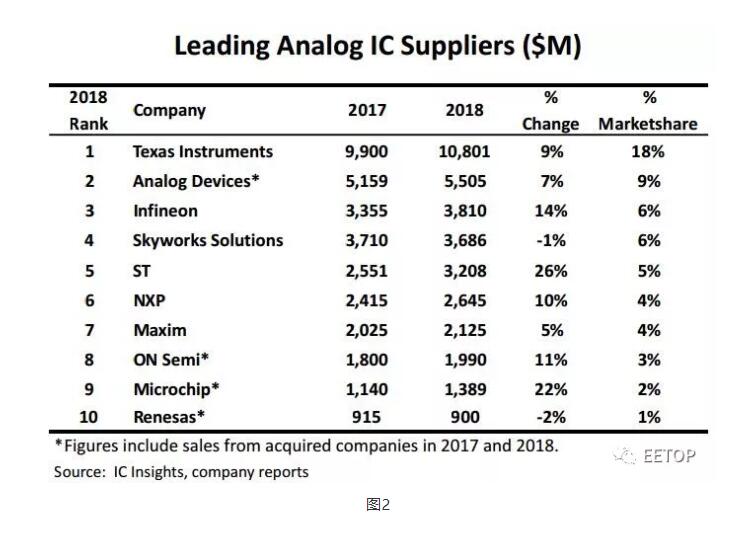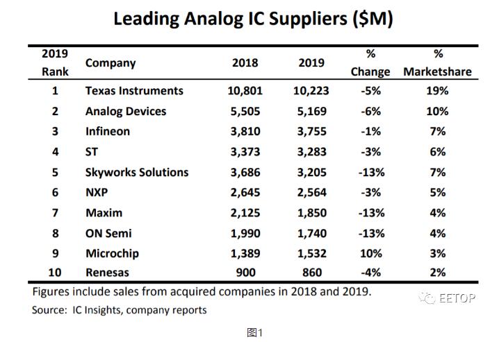 2019全球十大模拟IC厂商排名出炉!TI蝉联榜首,ST跃居第四!中国模拟IC任重道远!