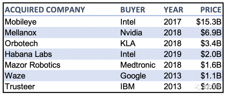 图2:超过十亿美元收购的以色列科技初创公司