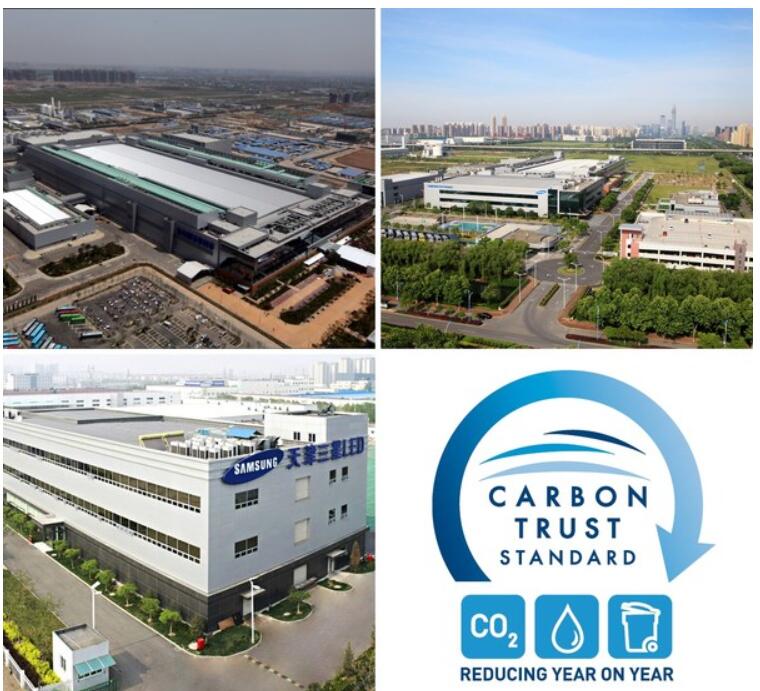 三星半导体在中国的3个业务点(西安、苏州、天津)都获得CARBON TRUST“三重认证”