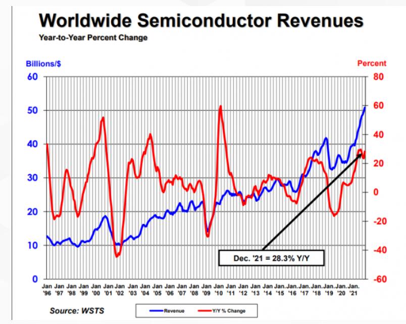 SIA首席执行官约翰·诺弗(John Neuffer)表示,2021年半导体市场销售的大幅增长主要是由于新冠疫情后的反弹,尽管今年这种反弹仍将持续,但不会出现去年这样的大幅增长效应。