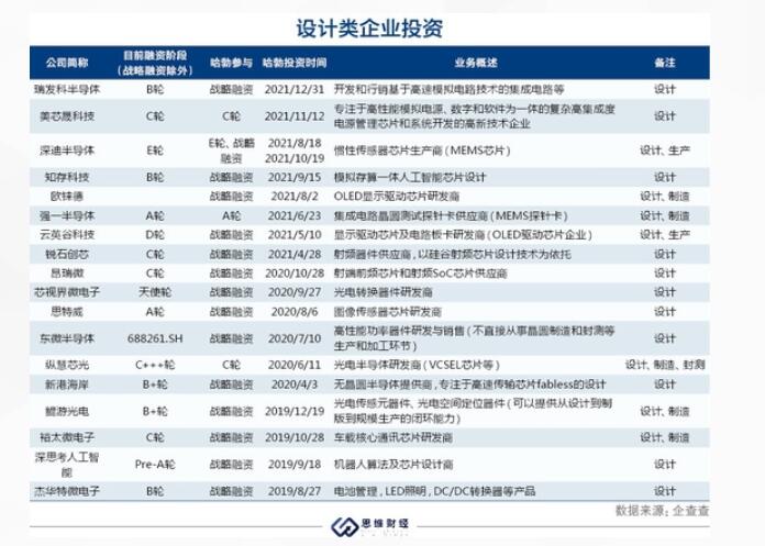 2020年,华为哈勃又陆续投资专注于高速传输芯片fabless设计的新港海岸、高性能功率器件研发商东微半导体和图像传感器芯片研发商思特威等公司,足见华为哈勃对设计类公司的重视。