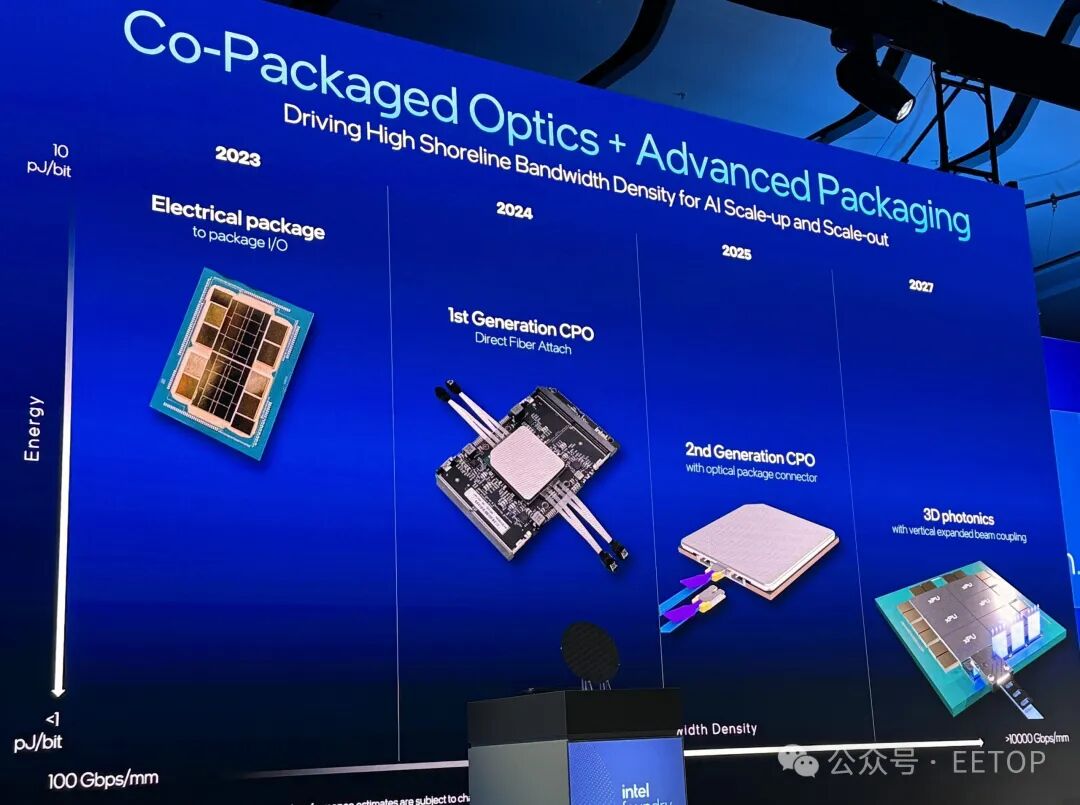 英特尔代工的首席技术与运营官兼总经理 Naga Chandrasekaran 在最近的一次演示中表示:“光互连与传统的电输入 / 输出相比具有显著优势。在提高边缘密度方面,它在带宽、延迟和功率效率方面都有好处。当我们能够采用光互连并将其应用于芯片到芯片的层面,再结合英特尔的先进封装能力时,这个解决方案将在我们如何扩展基于人工智能的解决方案方面提供显著优势。它将提供更密集和更先进的互连能力。此外,在计算领域,通过采用共封装光学解决方案,我们可以实现更低的延迟和更高的吞吐量。”