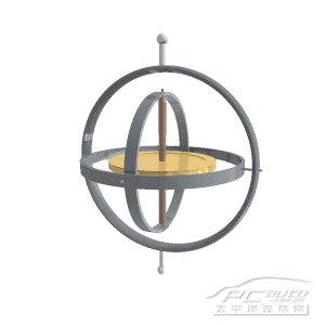 陀螺仪是一种用于测量角度以及维持方向的设备,在飞行游戏,体育类游戏和第一视角类射击等游戏中,可以完整监测游戏者手的位移,从而实现各种游戏操作效果。下图是一个最基础的机械陀螺仪模型,中间金色的转子在整个仪器的运动中,它因为惯性作用不受影响,而周边三个“钢圈”则会因为设备改变姿态而改变,通过这样来检测设备当前的旋转状态。