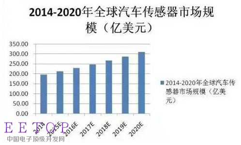 传感器市场达到225亿美元的规模,预计2020年将达到309亿美元,2015~2020期间的复合年增长率为7.72%。