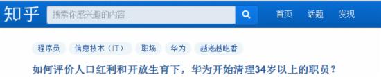 近日,在华为的内部沟通网站心声社区上出现了一篇帖子,帖子中透露出华为在中国区开始清理34岁以上员工的消息。