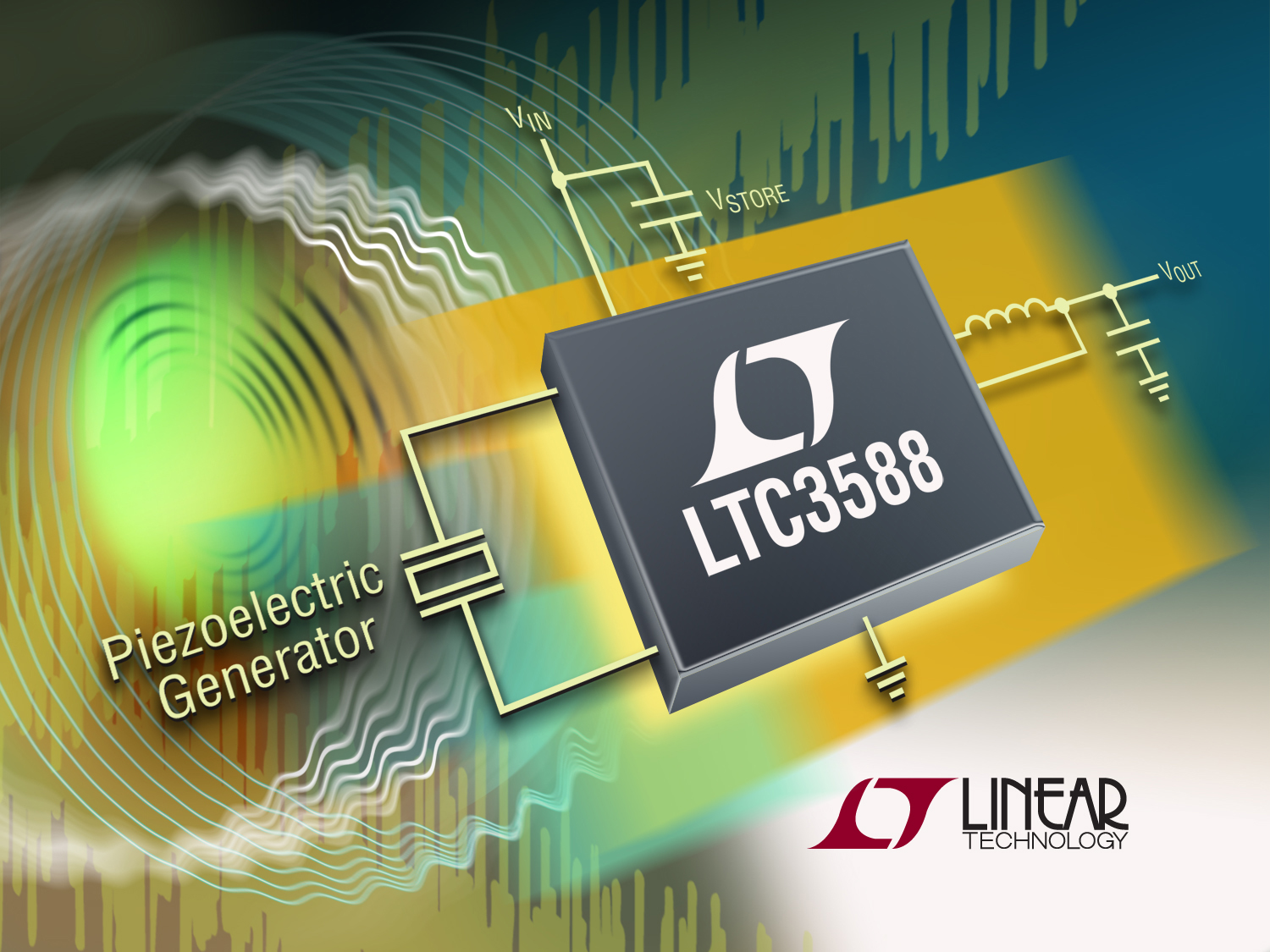 加利福尼亚州米尔皮塔斯 (MILPITAS, CA) – 2010 年 1 月 7 日 – 凌力尔特公司 (Linear Technology Corporation) 推出完整的能量采集解决方案 LTC3588-1,以优化低压能源 (包括压电传感器)。LTC3588-1 集成一个低损耗、全波桥式整流器和一个高效率降压型转换器,以通过压电传感器收集环境中的振动能量,然后将这种能量转换成良好调节的输出,以为应用微控制器、传感器、数据转换器和无线传输组件供电。LTC3588-1 在 2.7V 至 20V 的输入电压范围内工作,非常适用于多种压电传感器以及其它高输出阻抗能源。其高效率降压型 DC/DC 转换器提供高达 100mA 的连续输出电流或甚至更高的脉冲负载。其输出可以设定为 4 个固定电压之一 (1.8V、2.5V、3.3V 或 3.6V),以为无线发送器或传感器供电。输出处于稳定状态时 (无负载时) 静态电流仅为 950nA,从而最大限度地提高了总体效率。