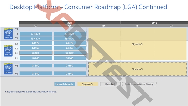 最后是T序列和V序列,这个就是我们常说的入门堪用,办公影音神器,包括i3、奔腾和赛扬,遗憾的是,Q3并不会得到迭代更新,最快也要等到今年Q4,代号为Skylake-S。