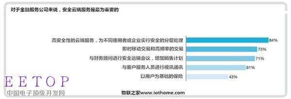 技术推动的是实时移动交易以及高频率交易。而在金融界,安全位居第一位,84%金融服务高级主管表示,他们对