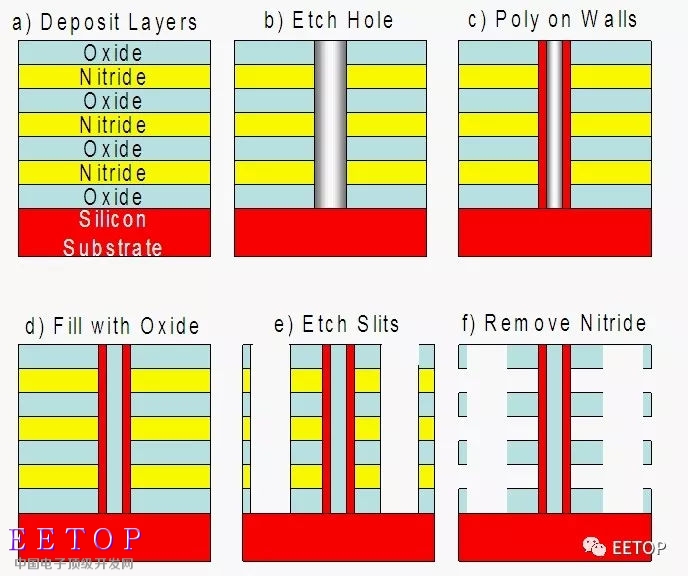 通常,整个过程在工厂中以一个连续的流程进行。供应商将首先采用基板并在其上构建逻辑电路,然后是NAND结构。