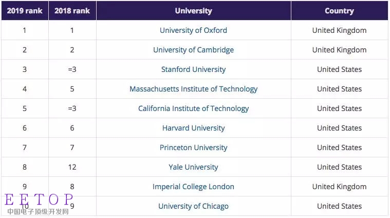 从全球角度看,综合排名前十的高校依然是被英美占领,它们依次是:牛津、剑桥、斯坦福、MIT、加州理工、哈佛、普林斯顿、耶鲁、帝国理工和芝加哥大学。但早年英美大学雄霸排行榜的局面,已因越来越多亚洲院校打进200强而改变,内地院校的表现尤其瞩目。