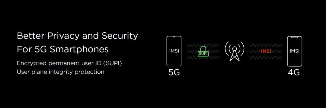 用户身份信息加密: 在2G/3G/4G时,用户身份信息(SUPI)是很容易被攻击的。而在5G中,用户身份信息将以加密形式发送,可以防范攻击,防止身份被复制。